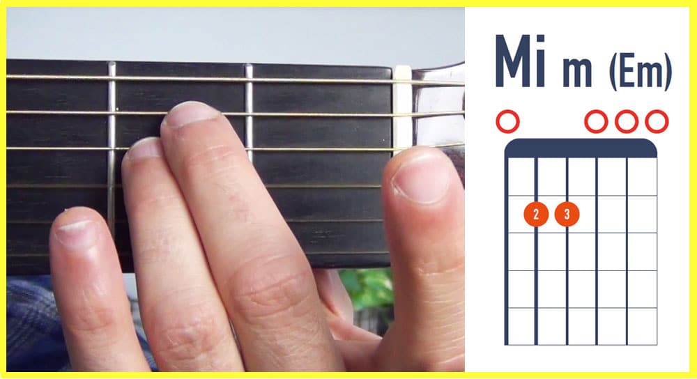 Le Mi mineur est probablement le plus facile des accords, le voici :