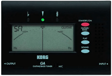 Ou bien sa version plus récente le Korg GA-50 Accordeur guitare et basse est pour moi le plus fiable des modèles, je n’ai jamais vu ce modèle tomber en panne ! Dans le même genre le Korg GA-1 fait très bien l’affaire aussi.