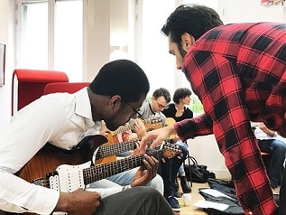 1/ Pourquoi ce projet d’enseigner la guitare aux débutants ? L’idée de départ est très simple, c’était de démontrer que tout le monde pouvait apprendre à jouer de la guitare, peut importe l’âge, si la on a des bases musicales ou non, si avait déjà fait de la musique avant, si on a des grandes mains des petites mains etc. Aujourd’hui avec une bonne méthode de guitare on peut apprendre avec plaisir. Plusieurs centaines d’élèves ont suivi le stage depuis sa création. Et on est super content de voir que tout cela a fonctionné. 2/ En quoi consiste cette méthode de guitare ? La méthode consiste à réduire au minimum la contrainte technique pour avoir dès le début du plaisir en apprenant à jouer de la guitare. On s’est rendu compte qu’on pouvait optimiser cela au maximum. Il y a eu un vrai travail qui a été mené pour contracter l’apprentissage, en ne gardant que ce qu’il y a d’essentiel pour arriver à un résultat clair : se faire plaisir à la guitare dès le début. Sans tout le coté pénible qu’on peut avoir parfois quand on veut apprendre quelque chose de nouveau. Avec de bonnes stratégies d’apprentissages on peut vraiment s’amuser à faire des choses géniales et l’expérience nous a montré que cela fonctionne.