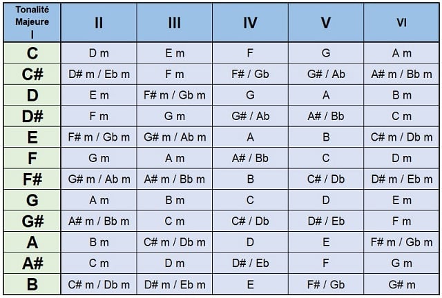 Mais si nous souhaitons utiliser des accords et pas simplement des notes, nous devons savoir lesquels sont majeurs et lesquels sont mineurs.